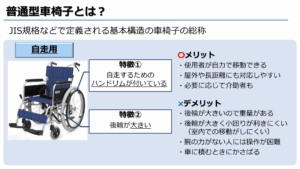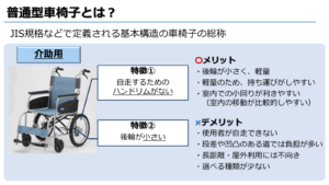 普通型車椅子とはJIS規格などで定義される基本構造の車椅子の総称になります。