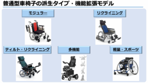 その他にも普通型車椅子の派生タイプ・機能拡張モデルといったものがあります。