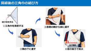 つぎに、肩手術後の方の三角巾の結び方についてです。