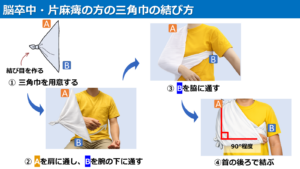 ◎脳卒中・片麻痺の方の三角巾の結び方の注意点